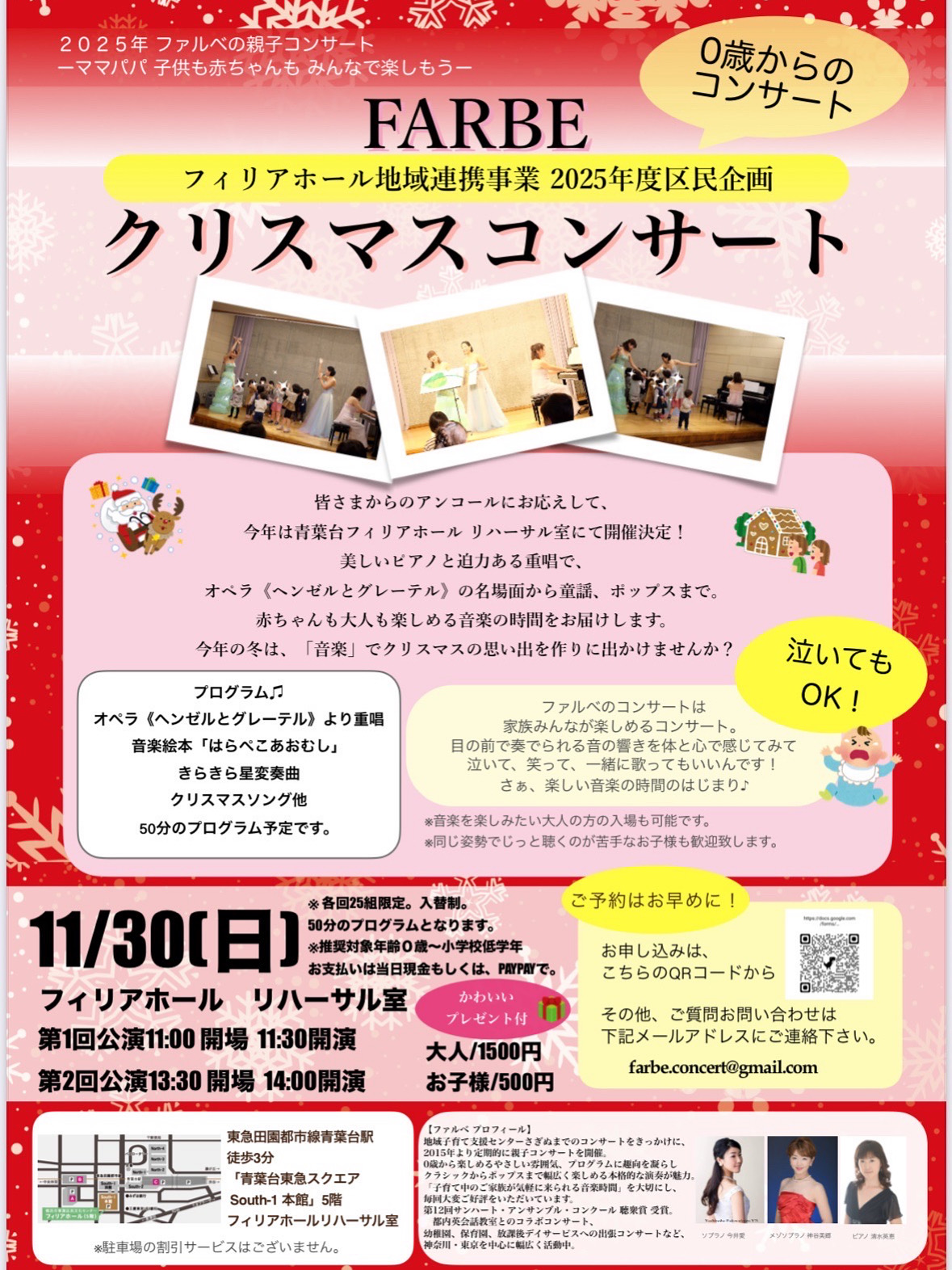 2025年11月30日親子クリスマスコンサート@青葉台フィリアホールリハーサル室